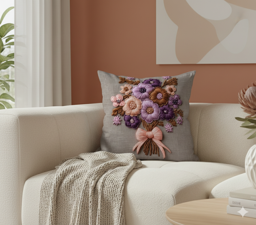 • Mor, lavanta, şeftali, pudra tonlarında çiçek illüstrasyonları
