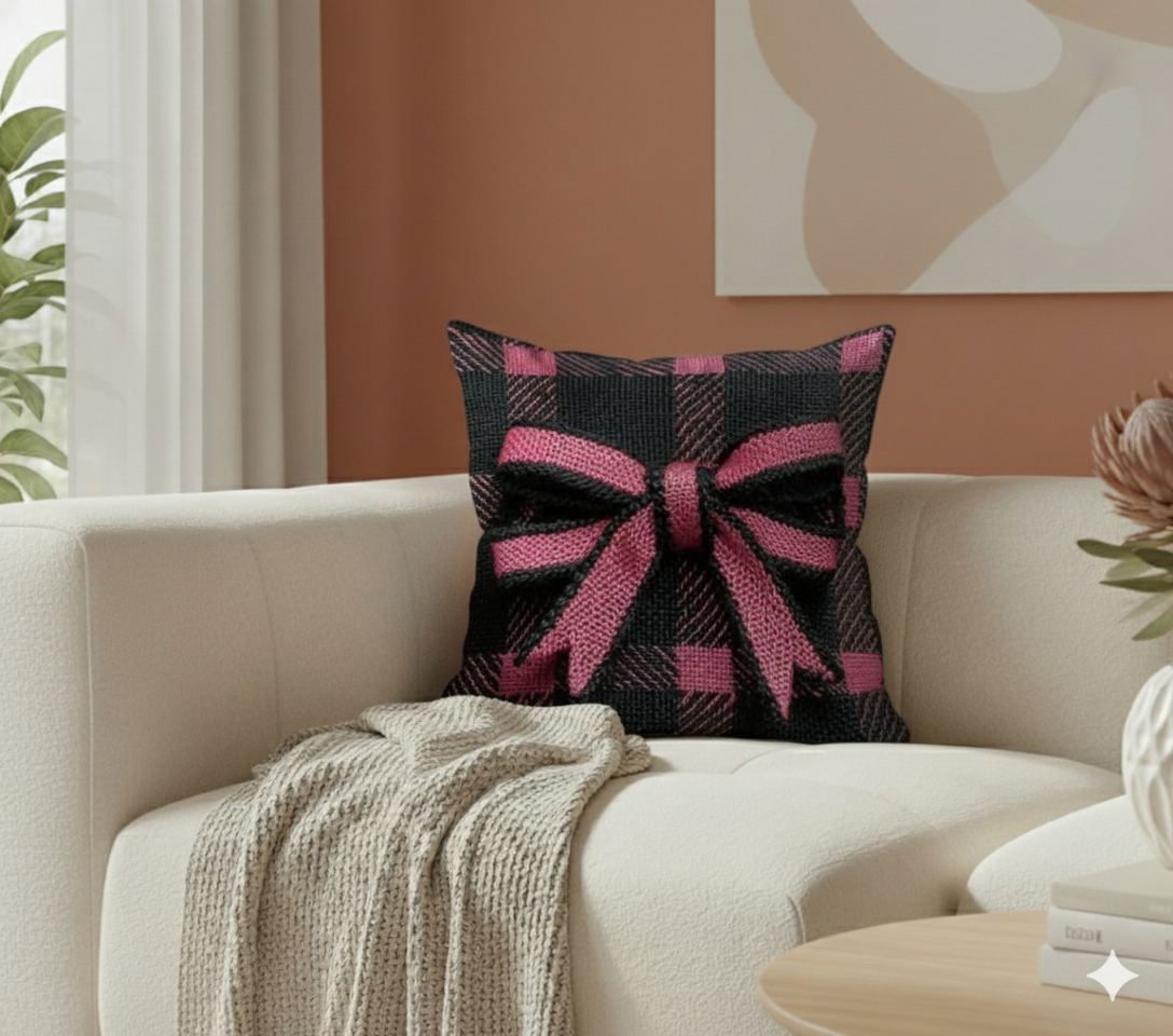 • Siyah zemin üzerinde fuşya çizgili, kalın kareli ekose desen