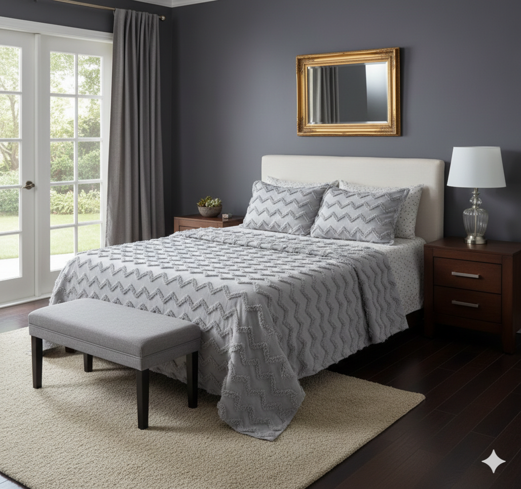 • Gri çift kişilik ponpon pike takımı, zarif gri rengi ve ponpon detaylarıyla yatak odanıza dekoratif bir şıklık katar. Konforlu ve estetik tasarım.