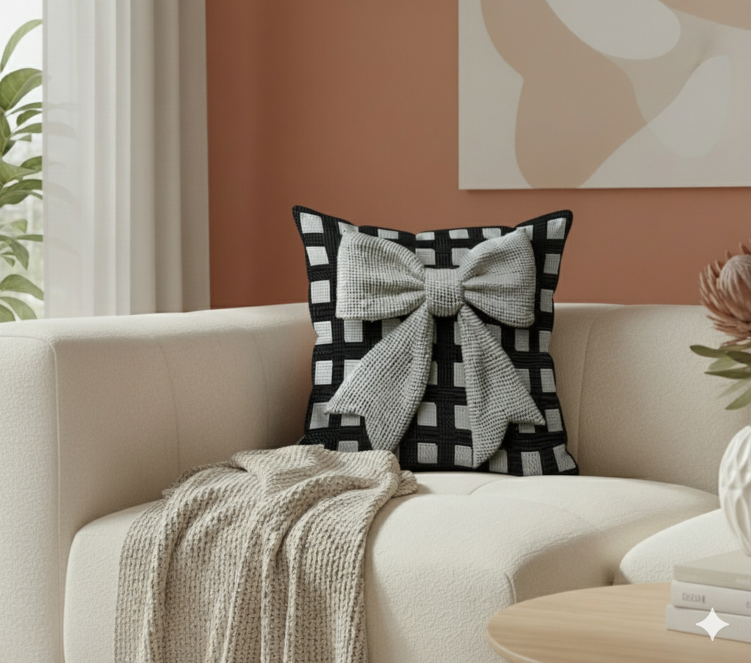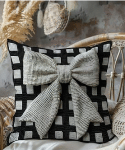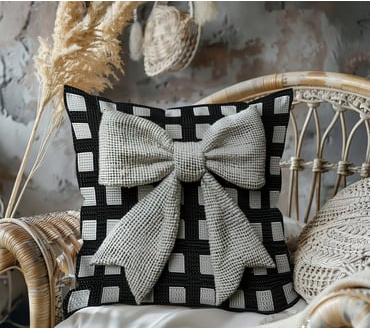 • Ortada büyük beyaz 3D fiyonk (örgü iplik efektiyle hazırlanmış)