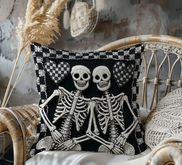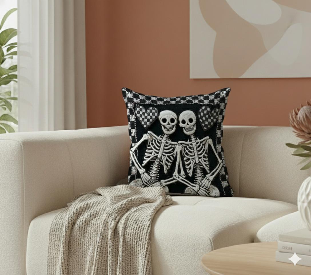 İplik efektli 3 boyutlu iskelet illüstrasyonları ve siyah-beyaz kontrastıyla, alternatif dekorasyonlara nefes aldıran özel bir tasarım.